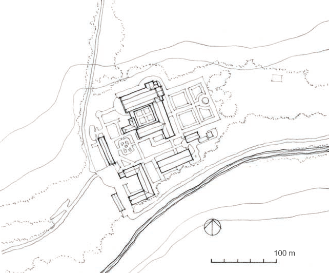 几个因素决定了修道院的位置。因为它远离城市,所以很少有让人分心的事情。但蓄水池里的人并不是闲散的僧侣,这座特殊的修道院是以金属生产为基础的:它既是一个修道院,又是一个工业综合体。修道院东边岩石山上的矿石提供了原材料,一条小而湍急的小溪穿过山谷,可以驱动铁匠铺的水车,而水车反过来又驱动着一个巨大的锤击金属。在铁匠铺里制作的工具不仅供僧侣们使用,还在周边地区出售。除了当时法国最多产的大铁匠铺外,该建筑群还包括修道院本身、朝圣者的旅社,以及一个草药和药用花园。