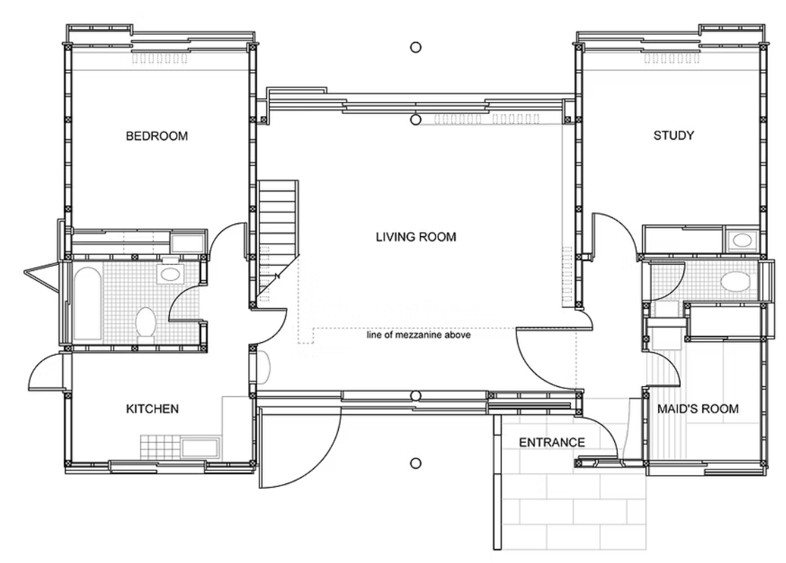 前川国男自宅 Maekawa Kunio House 前川国男 Maekawa Kunio 1942 前川国男邸采用了日本传统的木结构和人字形瓦片斜屋顶,同时融入了现代主义的设计理念。建筑的外观具有明显的日本传统建筑特征,如大屋顶和木柱,而内部空间则打破了传统日式民居的小块分割,形成了开放的起居空间。